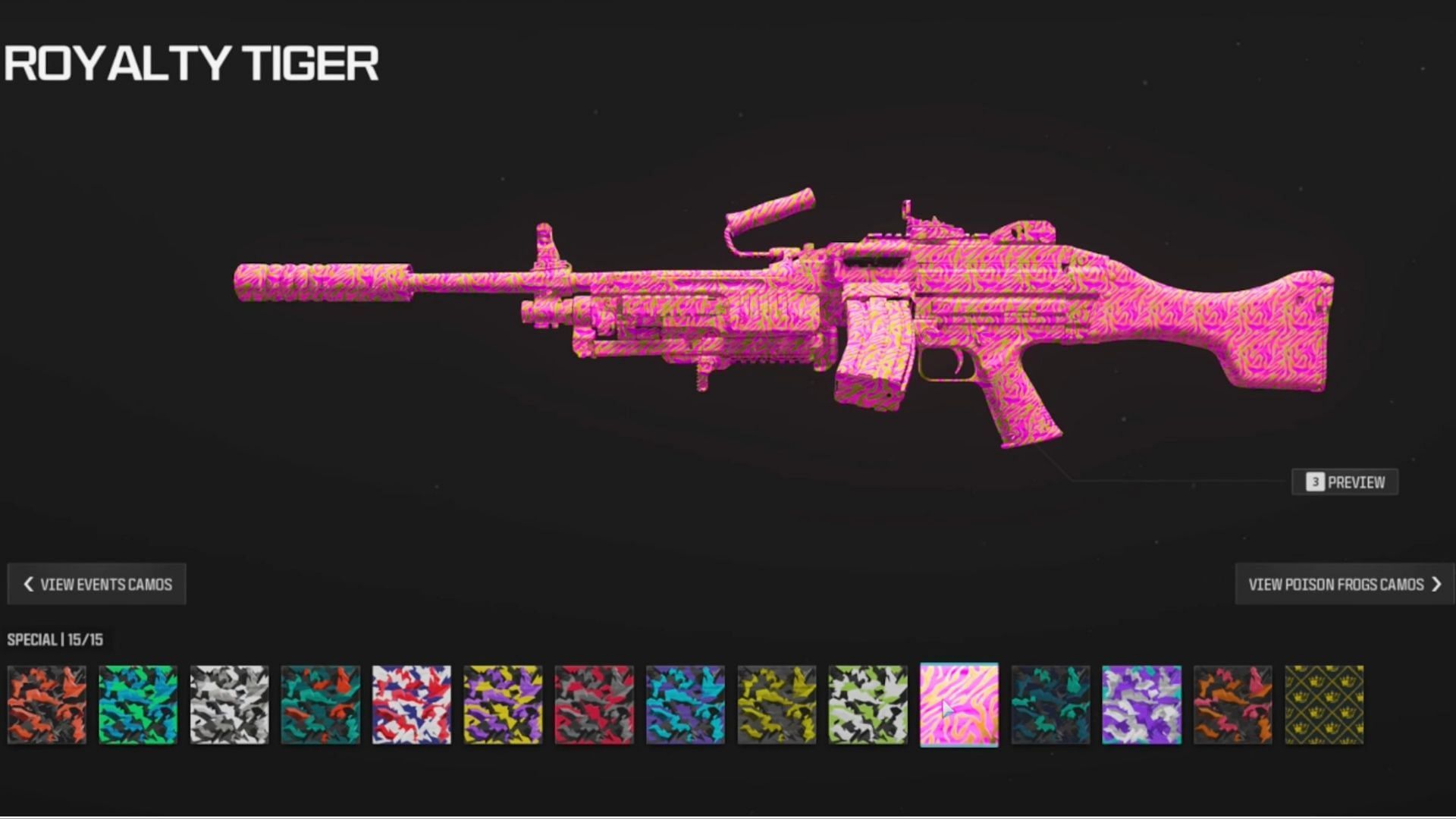 Jetzt CoD MW3 / Warzone 3 Royalty Tiger Tarnung freischalten lassen. Für Alle Waffen.