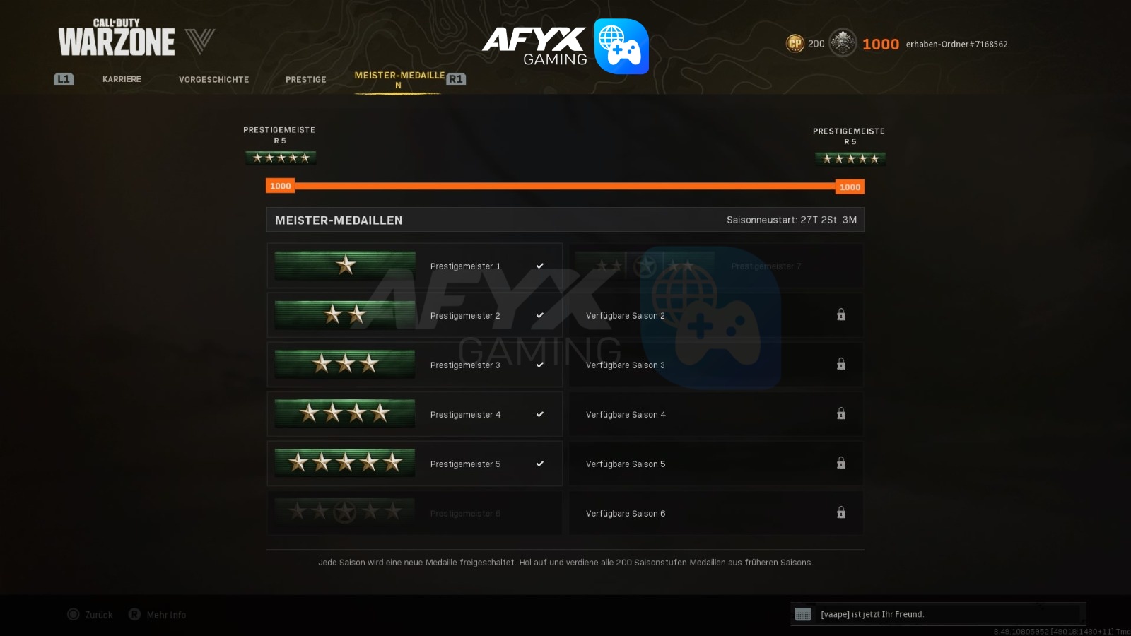 Modern Warfare / Warzone / Cold War / Vanguard Prestige Master + Level 1.000 + Battlepass Level 100 Account