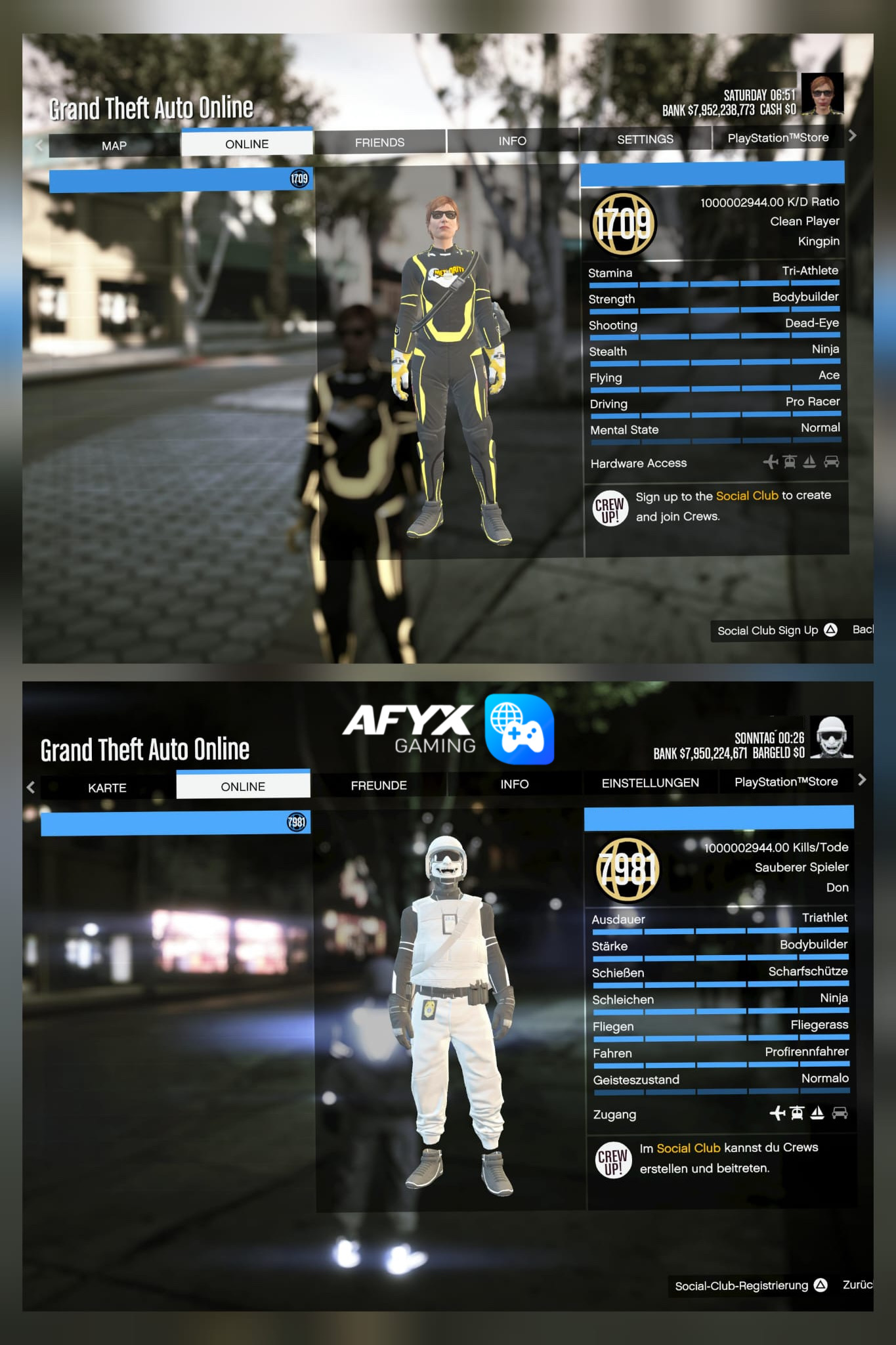 Hier bekommst du einen Fertigen GTA Online Unlock All Account mit 2 Charakter Level 7891 und 1709, 8 Milliarden, Hohe K/D die für immer fest bleibt und viele weitere exklusive Inhalte.